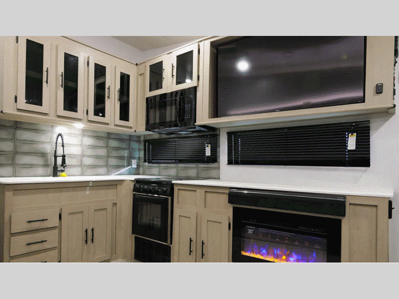 Sleeps 4 Slides 1 Length 32 ft Ext Width 8 ft 6 in Ext Height 13 ft 2 in Hitch Weight 1414 lbs Dry Weight 9022 lbs Cargo Capacity 2592 lbs Fresh Water Capacity 50 gals Grey Water Capacity 65 gals Black Water Capacity 40 gals Available Beds Custom King with Versa-Tilt Refrigerator Type 12V Refrigerator Size 10 cu ft Convection Cooking Yes Cooktop Burners 3 Number of Awnings 1 LP Tank Capacity 30 lbs Water Heater Type Tankless AC BTU 15000 btu TV Info LR 55" Smart TV Awning Info Power w/Adjustable Legs Axle Count 2 Number of LP Tanks 2 Shower Type Radius Electrical Service 50 amp Similar Floorplans