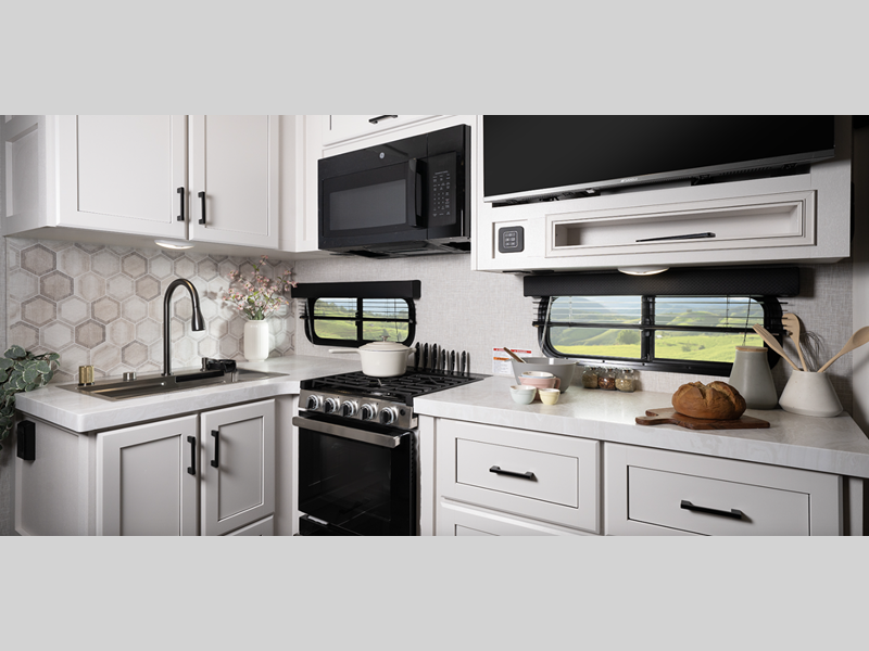 - Extra 120V power outlets in kitchen and slide rooms (where applicable)