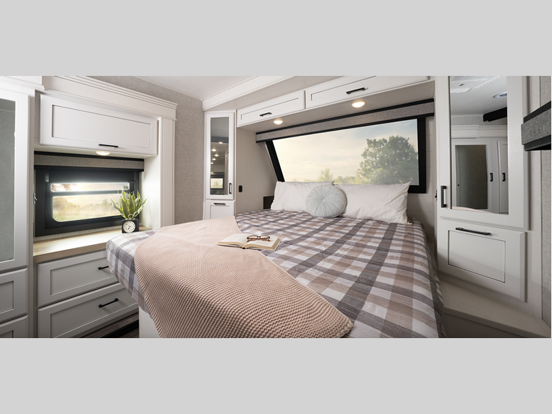 Sleeps 4 Slides 1 Length 30 ft 1 in Ext Width 8 ft 1 in Ext Height 11 ft 8 in Int Height 7 ft 1 in Interior Color Calli Linen Hitch Weight 785 lbs GVWR 9200 lbs Dry Weight 7060 lbs Cargo Capacity 2140 lbs Fresh Water Capacity 52 gals Grey Water Capacity 37 gals Black Water Capacity 37 gals Tire Size ST225/75R15'E Furnace BTU 35000 btu Available Beds Olympic Queen Refrigerator Type 12V Refrigerator Size 10 cu ft Cooktop Burners 3 Shower Size 30" x 48" Number of Awnings 1 LP Tank Capacity 30 lbs Water Heater Type Tankless AC BTU 15000 btu TV Info LR 4K Ultra LED HD Smart TV Awning Info 16' Electric w/Integrated LED Ligths Axle Count 2 Number of LP Tanks 2 Shower Type Standard Electrical Service 50 amp Similar Floorplans