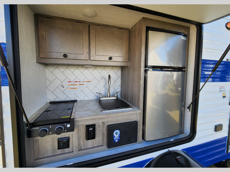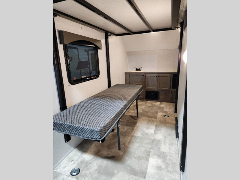 If you aren't already convinced to check out the Sunray, then the features will do the trick. The construction consists of a fully walkable 3/8" roof decking, wood studs built 16" on center, spring-leaf Dexter axles, and a powder-coated steel chassis. For comfort, you'll find an air conditioner and furnace, a 6-gallon DSI gas water heater, a stove, sink cover, a refrigerator, and microwave. You'll enjoy using the outside shower to rinse off muddy boots, sticky hands, or outdoor equipment, and the portable Bluetooth speaker will entertain you for years and years.