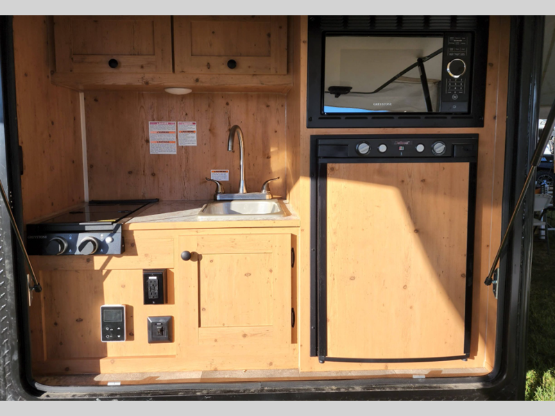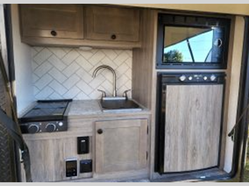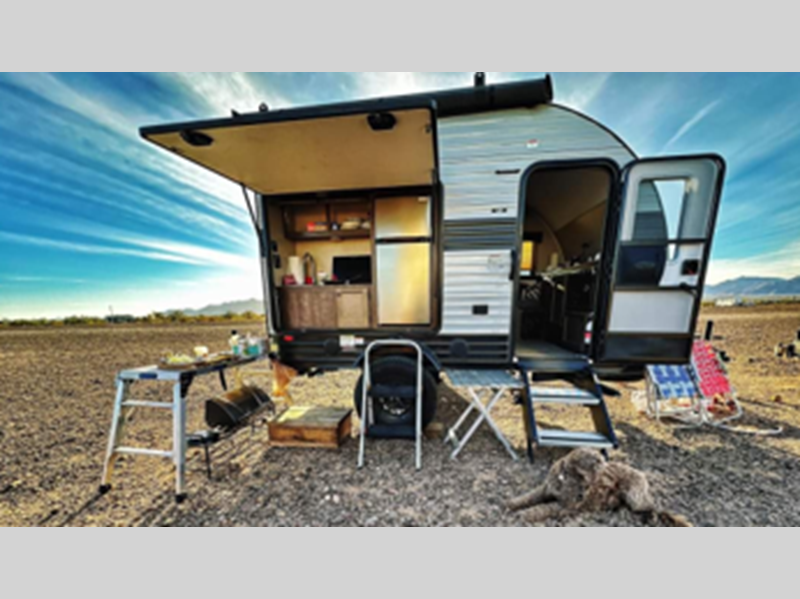 Sleeps 2 Length 13 ft 6 in Ext Width 8 ft 6 in Ext Height 8 ft 2 in Int Height 4 ft 11 in Interior Color Grotto, Gray, Red, Turquoise Exterior Color White, Gray, Red, Black, Blue, Yellow, Orange Hitch Weight 195 lbs Dry Weight 1795 lbs Cargo Capacity 1900 lbs Fresh Water Capacity 22 gals Cooktop Burners 2 LP Tank Capacity 20 lbs Water Heater Capacity 6 gal Water Heater Type DSI Gas Axle Count 1 Number of LP Tanks 1 -